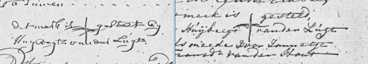 We zien hier dat alleen de familie van der Hout en Kaatje Spanjersberg leverancier waren van de getuigen, onder de getuigen was niet één ‘van der Lugt’ te vinden. De verklaring hiervoor vinden we onderstaand.